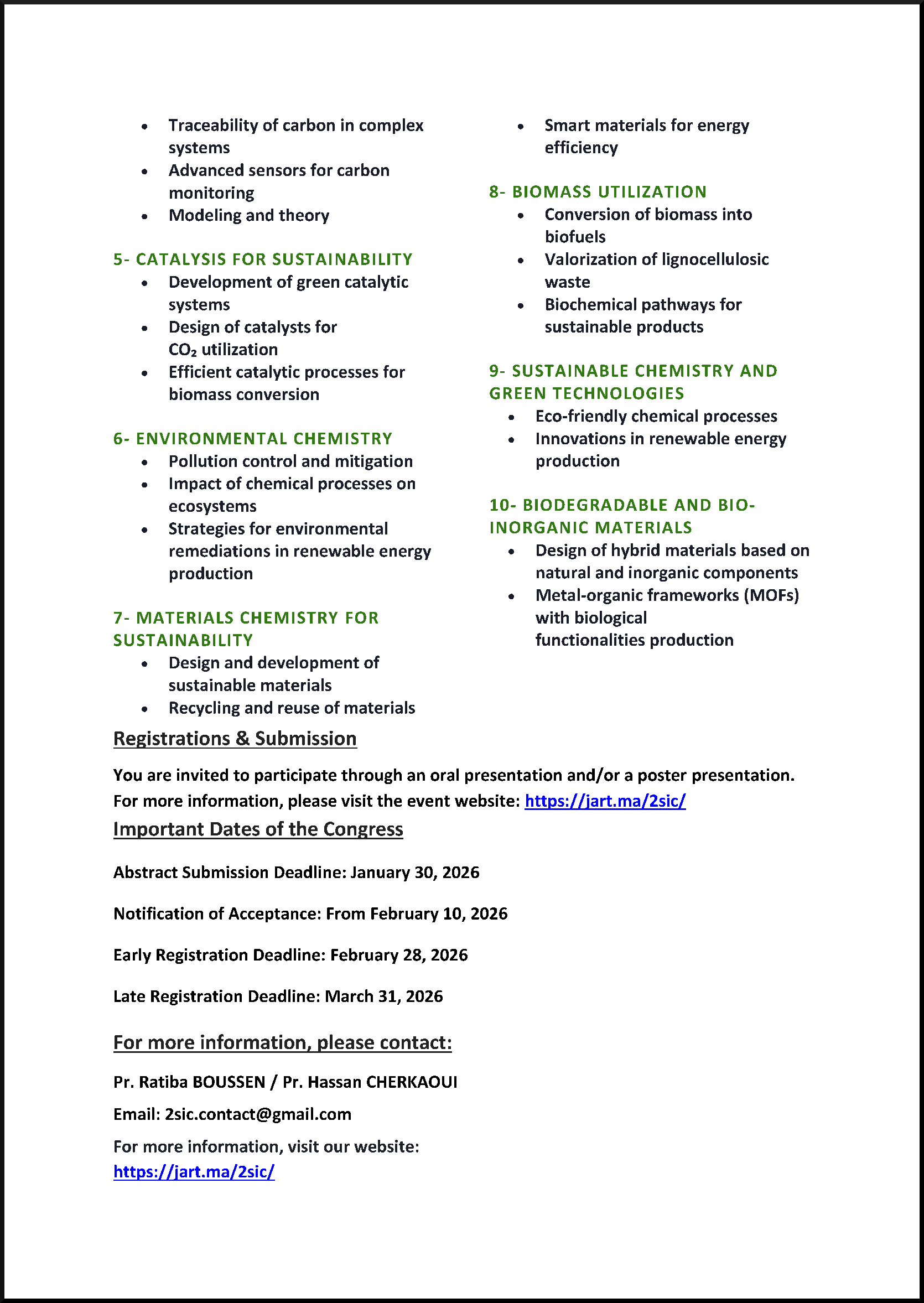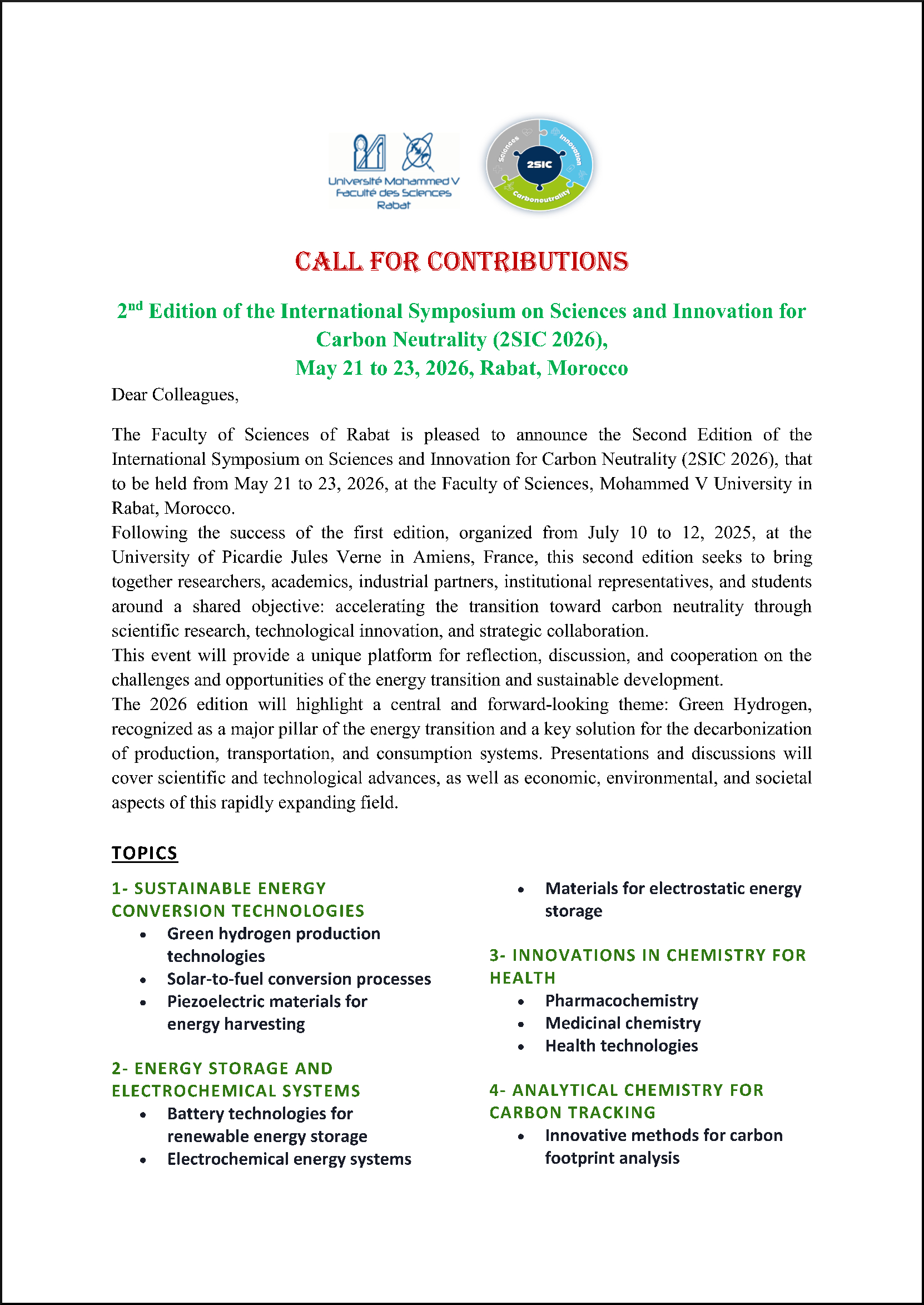 2nd Edition of the International Symposium on Sciences and Innovation for Carbon Neutrality (2SIC 2026), May 21 to 23, 2026, Rabat, Morocco